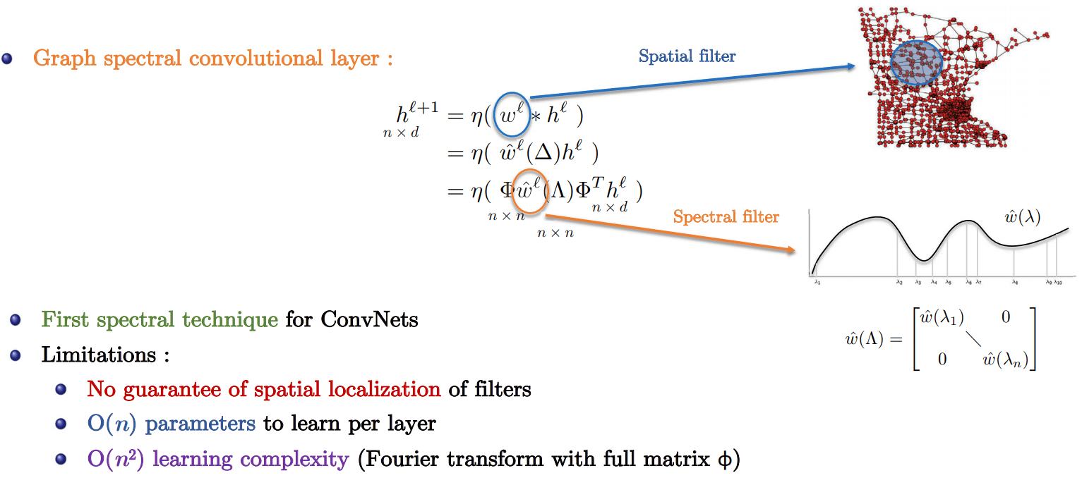 Convert Graph data to spectral domain data by using the eigenvectors of laplacian operator on the graph data and perform learning on the transformed data.